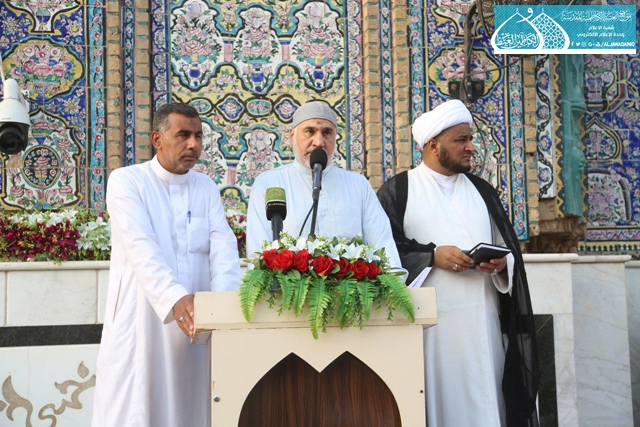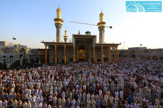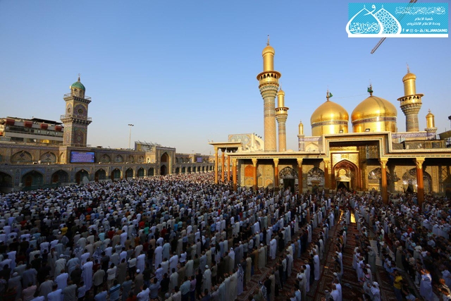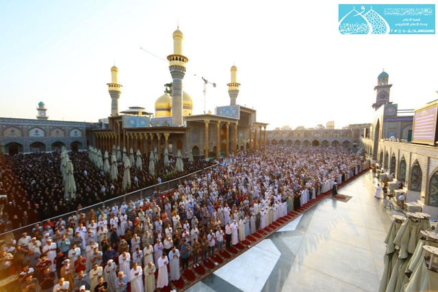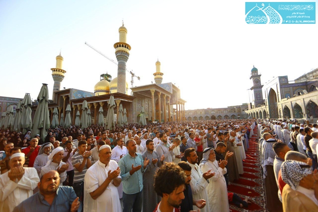 وابتهل المصلون إلى العليّ القدير بالدعاء بتعجيل فرج مولانا صاحب العصر والزمان الإمام المهدي المنتظر "عجل الله فرجه الشريف" وأن يحفظ مرجعيتنا العُليا المتمثلة بسماحة آية الله العظمى السيد علي الحسيني السيستاني "دام ظله الوارف"، ويعم الأمن والآمان على بلدنا العزيز، وأن يكلّل جهود قواتنا الأمنية وحشدنا المقدس المرابطين في ساحات الوغى والجهاد، وهم يتصدون لقوى الكفر والشرّ والضلال بالنصر والظفر.