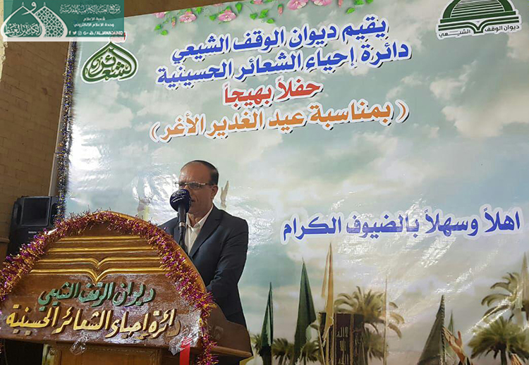 بتوجيه من السيد الأمين العام للعتبة الكاظمية المقدسة الأستاذ الدكتور حيدر حسن الشمّري، لبّى وفد خدّام الإمامين الجوادين "عليهما السلام" دعوة حضور الحفل البهيج الذي أقامهُ ديوان الوقف الشيعي/ دائرة إحياء الشعائر الحُسينية لمناسبة ذكرى عيد الله الأكبر .. الغدير الأغر، والذي حضره عدد من الشخصيات الدينية والاجتماعية.