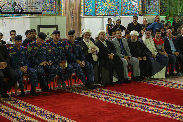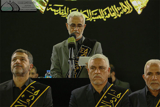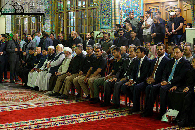 وأضاف: أن من عزم سيد الثائرين وقبلة المجاهدين استُمدّت فتوى الدفاع الكفائي لتكون المرجعية الدينية العُليا على خطى الحسين في نصرة الدين والدفاع عن الإسلام المحمدي الأصيل فثورته "عليه السلام" كانت في سبيل الله، وفتوى المرجعية الرشيدة كانت من أجل بقاء كلمة الله هي العُليا وحفظ الدين من الزيغ والانحراف .. نعم تكرر المشهد وتغير الأشخاص فسقط الشهداء يوم الطف لتزفهم الملائكة إلى جنات الخلد، وفي زماننا هذا أيضاً ما زالت مواكب الشهداء يُزَفون إلى جنات الفردوس العاليات مع الحسين .. كان أبوه أمير المؤمنين فالحسين أمير الشهداء يقودهم إلى مقعد صدق عند مليك مقتدر، كلما شاهدنا طفلة يتيمة تجلت أمامنا رقية وانكسارها .. وكلما مر علينا طفل يتيم استذكرنا يتامى الحسين وآل عقيل والنساء الثكالى من بني هاشم، فتصرفنا إزاء يتامى الحشد الشعبي والقوات الأمنية يجب أن يكون بمستوى تصرفنا أزاء يتامى وسبايا عاشوراء من التقديس والاحترام والدفاع عنهم .. فتحية محمدية علوية حسينية لحشدنا الشعبي وشهدائهم، وأيتامهم .. نقف أمام تضحياتهم بإجلال وإكبار لأنهم كانوا كأصحاب الحسين ليس للدنيا حساب ومنزلة عندهم وان طريقهم ينتهي بالشهادة لا بمنصب وجائزة .. أبناء الحشد تركوا الدينا وزبرجها وزخرفها للدفاع عن المقدسات همهم الأول والأخير أن يقفوا في ذلك الطابور الطويل في قافلة سيد الشهداء الإمام الحسين "عليه السلام").