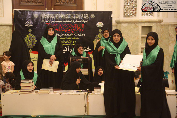 أقامت الأمانة العامة للعتبة الكاظمية المقدسة نشاطات دينية وثقافية متعددة في شهر محرم الحرام لإحياء ذكرى استشهاد سيد شباب أهل الجنة الإمام الحسين وأهل بيته وأصحابه "عليهم السلام"، وكان من بين تلك النشاطات إقامة الختمة القرآنية النسوية المهداة إلى الإمام الحسين وشهداء الطف "عليهم السلام"، التي نظمها قسم الشؤون الفكرية والثقافية/ دار القران الكريم في العتبة الكاظمية المقدسة، والتي استمرت على مدى ثلاثين يوماً، حيث شاركت في هذا النشاط القرآني المتميز نخبة طيبة من النساء المؤمنات وبحضور الزائرات اللواتي توافدن لزيارة الإمامين الجوادين "عليهما السلام".