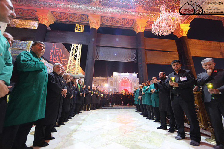 نظّم بعد تقديمهم الخدمات للزائرين الوافدين في موسم الأربعين نظم موكب خدّام العتبة الرضوية المقدسة عزائية إحياءً لذكرى استشهاد ثامن الأئمة الهداة، وغصن الشجرة السرمدية الإمام الضامن علي بن موسى الرضا "عليه السلام" وكان في استقبال المعزّين ومشاركتهم بهذه المناسبة الأليمة خدّام الإمامين الجوادين "عليهما السلام".
