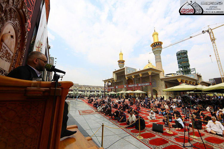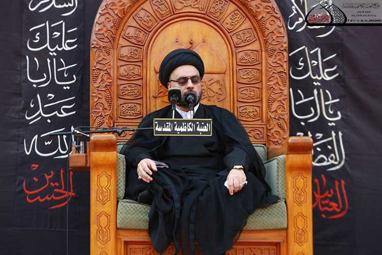انطلاقاً من قول عقيلة الطالبين زينب الكبرى "عليها السلام" في حديثها في مجلس يزيد، عندما قالت له: (فوالله لا تمحو ذكرنا، ولا تُميت وحينا، ولا تدرك أمدنا)، شهدت رحاب الصحن الكاظمي الشريف مراسم الأربعين السنوية التي درجت على إقامتها الأمانة العامة للعتبة الكاظمية المقدسة صباح يوم العشرين من شهر صفر المظفر من كلّ عام بمشاعر الإيمان وطقوس الحزن والولاء، حيث بدأت المراسم بتلاوة مباركة من الذكر الحكيم شنّف بها أسماع الحاضرين القارئ السيد عبد الكريم قاسم، بعدها استمعت الحشود المعزّية التي توافدت إلى الصحن الكاظمي الشريف إلى سماحة الدكتور السيد صفاء الفحام وقراءته للقصة الكاملة لمسيرة الركب الزينبي وما جرى على عيالات آل بيت نبوة "عليهم السلام" وما ارتكبه أوباش الأمة بحقّ الرسالة وحَمَلتها في رحلة الشقاء والسَبي والضيم والمصائب العظيمة التي رافقها وصاحبها زين العابدين وسيد الساجدين الإمام علي بن الحسين السجاد "عليه السلام" متحملاً المسؤولية ذاتها لإعلاء كلمة الحقّ ونبذ الباطل بكلّ أشكاله وصوره على أيدي الظالمين الذين لم يراعوا فيه حرمةّ للبيت العلوي الطاهر.