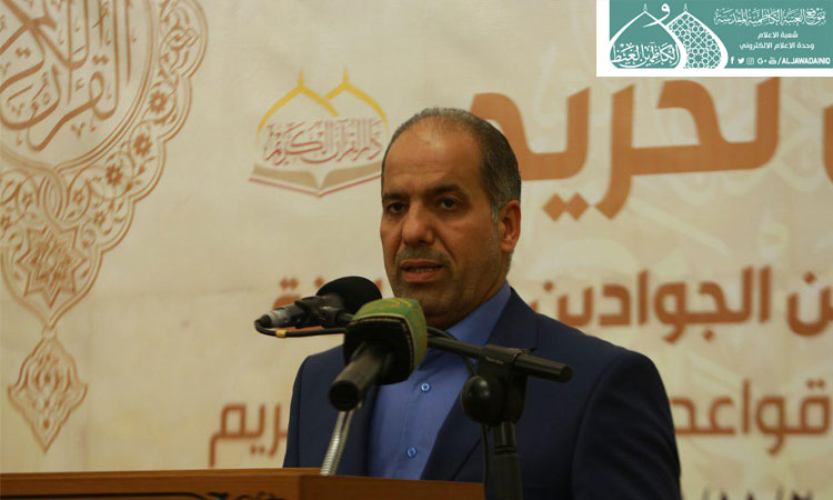 ولأنكم تعلمتم تلاوة القرآن وهو الثقل الأول، ودرستم أحكام تجويده في بيوت أذن الله أن ترفع ويذكر فيها اسمه في رحاب أهل البيت "عليهم السلام" ومن جوار الإمامين الكاظمين الجوادين "عليهما السلام" وهو الثقل الثاني فهنيئاً لكم ولعوائلكم ولأساتذتكم ولنا بكم عندما يشملكم حديث رسول الله "صلّى الله عليه وآله وسلّم" حين قال: (وَمَا اجْتَمَعَ قَوْمٌ فِى بَيْتٍ مِنْ بُيُوتِ اللَّهِ يَتْلُونَ كِتَابَ اللَّهِ وَيَتَدَارَسُونَهُ بَيْنَهُمْ إِلاَّ نَزَلَتْ عَلَيْهِمُ السَّكِينَةُ وَغَشِيَتْهُمُ الرَّحْمَةُ وَحَفَّتْهُمُ الْمَلاَئِكَةُ وَذَكَرَهُمُ اللَّهُ فِيمَنْ عِنْدَهُ)