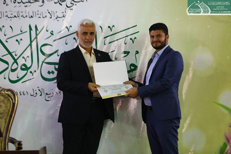 تيمناً بذكرى إشراقة النورَين العظيمَين، والصادقَين المصدّقَين، النبي الأكرم محمد "صلّى الله عليه وآله وسلّم"، وحفيده الإمام السادس جعفر بن محمد الصادق "عليه السلام"، أقامت الأمانة العامة للعتبة الكاظمية المقدسة ـ قسم الشؤون الفكرية والثقافية/ دار القرآن الكريم مهرجان ربيع الولادة القرآني الأول، تحت شعار: (على صراط أحمد)، بحضور الأمين العام للعتبة الكاظمية المقدسة الأستاذ الدكتور حيدر حسن الشمّري، وأعضاء مجلس الإدارة، ومسؤولي المؤسسات القرآنية ونخبة من أساتذة وقراء القرآن الكريم، وجمعٌ غفير من زائري الإمامين الجوادين "عليهما السلام".