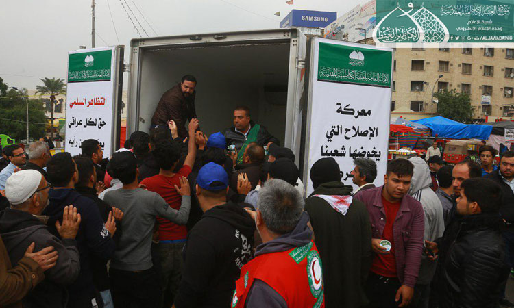 تواصل الأمانة العامة للعتبة الكاظمية المقدسة وبتوجيه من أمينها العام الأستاذ الدكتور حيدر حسن الشمّري بإرسال الدعم اللوجستي وحملات الإمدادات الإنسانية إلى ساحة التحرير في العاصمة بغداد، ودعم وإسناد حركة التظاهرات والمتظاهرين السلميّين وإدامة زخم الاحتجاجات والاعتصامات الشعبية المطالبة بتحقيق الإصلاحات.