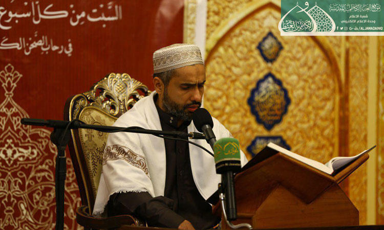 انطلاقاً من قول رسول الله " صلّى الله عليه وآله وسلّم": ( من كان القرآن حديثه، والمسجد بيته بنى الله لهُ بيتا في الجنة )، وفي إطار سعي الأمانة العامة للعتبة الكاظمية المقدسة بتفعيل التواصل القرآني وخدمة كتاب الله العزيز، والإسهام في نشر الثقافة القرآنية، تعطّرت أجواء الصحن الكاظمي الشريف بالنفحات الإيمانية والقدسية وزودت جموع المؤمنين من زائري الإمامين الجوادين "عليهما السلام" ببركات الذكر الحكيم من خلال إقامة المحفل القرآني الأسبوعي بحضور الأمين العام للعتبة الكاظمية المقدسة الأستاذ الدكتور حيدر حسن الشمّري وعدد من أعضاء مجلس الإدارة الموقّر، ونخبة من الأساتذة المهتمين بالشأن القرآني، وجمع من زائري الإمامين الكاظمين "عليهما السلام".