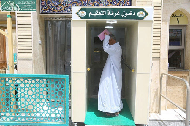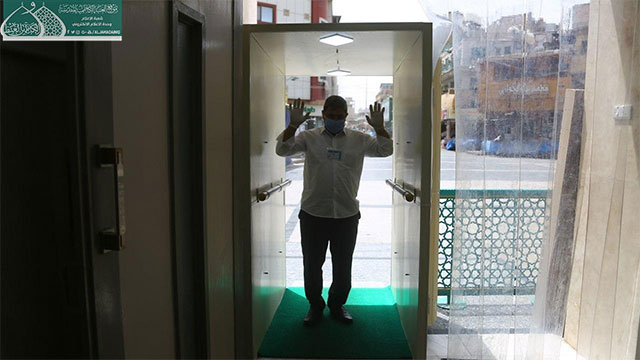 الملاكات الهندسية في العتبة الكاظمية المقدسة تُصنّع غرفة التعقيم الصحية الوقائية
