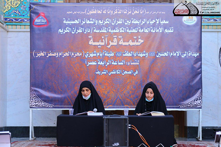 وتجدر الإشارة أن موعد انعقاد جلسات الختمة القرآنية " للرجال " في الساعة (5) عصراً، و" للنساء " الساعة (4) عصراً في الصحن الكاظمي الشريف.