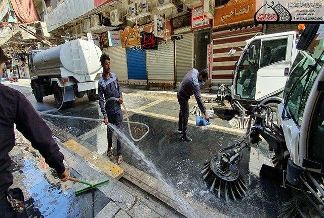الأمانة العامة للعتبة الكاظمية المقدسة تطلق حملة تنظيف الشوارع المؤدية للصحن الشريف بعد انتهاء مراسم عاشوراء
