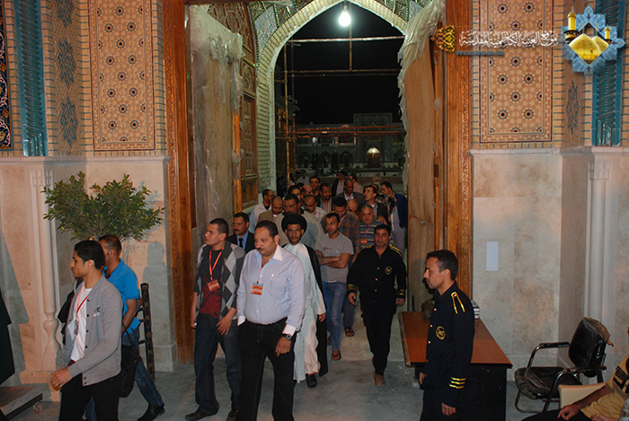 تشرف بزيارة الإمامين الجوادين(عليهما السلام) وفد المؤسسات الثقافية ودور النشر المشاركة في فعاليات معرض بغداد الدولي للكتاب 2014، وكان خَدَمَة الإمامين الجوادين في قسم العلاقات العامة قد أعدوا برنامجاً حافلاً لهم شمل جولة ميدانية في رحاب الصحن الكاظمي الشريف لمشاهدة معالم العتبة المقدسة وماتشهده من تطور على الصعيد الخدمي والعمراني فضلاً عن زيارة أروقة معرض شعبة النقش والزخرفة والتعرف على الأعمال الفنية والإبداعية التي يقوم بها خَدَمَة الإمامين الجوادين(عليهماالسلام) والضيافة في مضيف الإمامين الجوادين وتقديم الهدايا التذكارية من بينها المطبوعات الفكرية والثقافية للعتبة الكاظمية المقدسة .