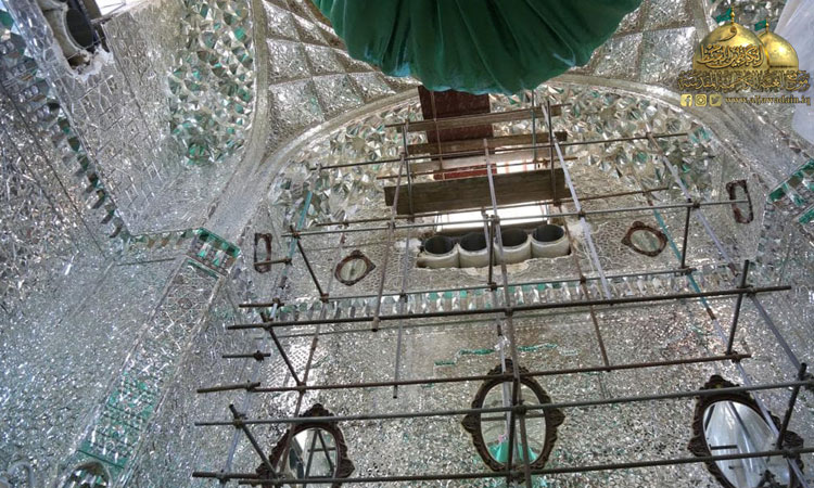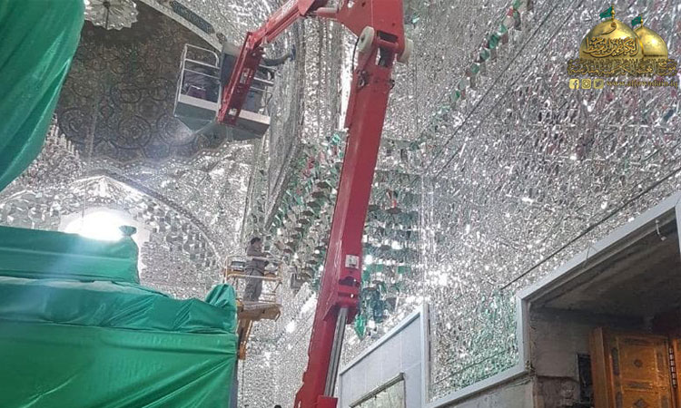 الخدماتُ المتنوعةُ في الحرم الشريف وبالتعاون مع الجهود الهندسية بتصميم خرائطَ بزخارفَ نباتيةٍ وهندسية للمرايا (العينه كاري) واستبدال القطع التالفة والمتضررة وتعويض المفقودة منها وتنفيذها بطريقة تتناسب وروعة هذا المشهدَ المقدس وتُـعطي للناظرين رونقاً وجمالاً، فضلا عن ترميمِ قسمٍ كبيرٍ من جدران الأروقة المباركة وانتهاءً بالحرم.