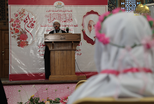 استهل الحفل الذي أقيم في رواق السيدة آمنة بنت وهب "عليها السلام" في رحاب الصحن الشريف، بتلاوة معطرة لآيٍ من الذكر الحكيم، بعدها ألقى فضيلة الشيخ عماد الكاظمي، كلمة الأمانة العامة للعتبة الكاظمية المقدسة هنأ في مطلعها الحضور بهذه المناسبة الميمونة، وبيّن أهمية التكليف الشرعي قائلاً: (علينا أن نتخذ من مبدأ سيدة النساء الزهراء "عليها السلام" منهاجاً لحياتنا ونجعلها أسوتنا وقدوتنا الحسنة فنقتفي أثرها ونسير في هداها، حيث كانت "عليها السلام" شديدة الالتزام بالعفاف والحجاب، لأنه رمز عفة المرأة وعنوان قيمتها الحقيقية).