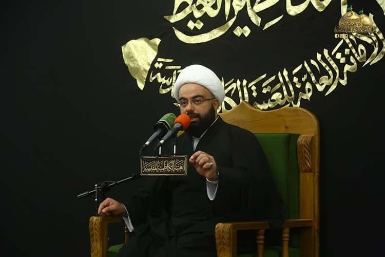 كما أشار فضيلته إلى مدرسته الحافلة بالعلوم الإنسانية، فضلاً عن الإشارة إلى كيفية مواجهته للمواقف السياسية آنذاك حتى تم اغتياله من قبل السلطة العباسية الحاكمة بعد محاربة ضارية والتضييق عليه وعلى أتباعه "عليه السلام".