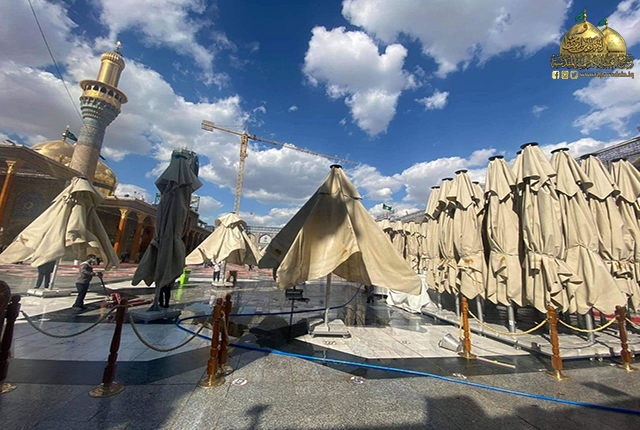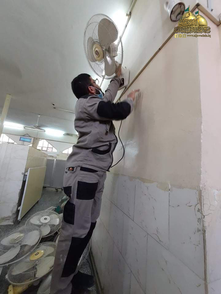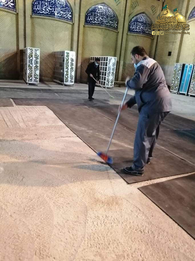 بتوجيه من قبل الأمين العام للعتبة الكاظمية المقدسة الأستاذ الدكتور حيدر حسن الشمّري، استنفرت شعبة النظافة جهود ملاكاتها الخدمية العاملة في جميع وحداتها وأطلقت حملات تنظيف واسعة شهدتها أيام الحظر الصحي الوقائي لإدامة أرجاء الصحن الكاظمي الشريف والتي شملت: غسل السجاد والموكيت وتعفيره، وإدامة المظلات والحاويات، وتأهيل شبكات الصرف الصحي وخطوط الأنفاق داخل الصحن الشريف والشوارع المحيطة به، فضلاً عن المواقع الأخرى.