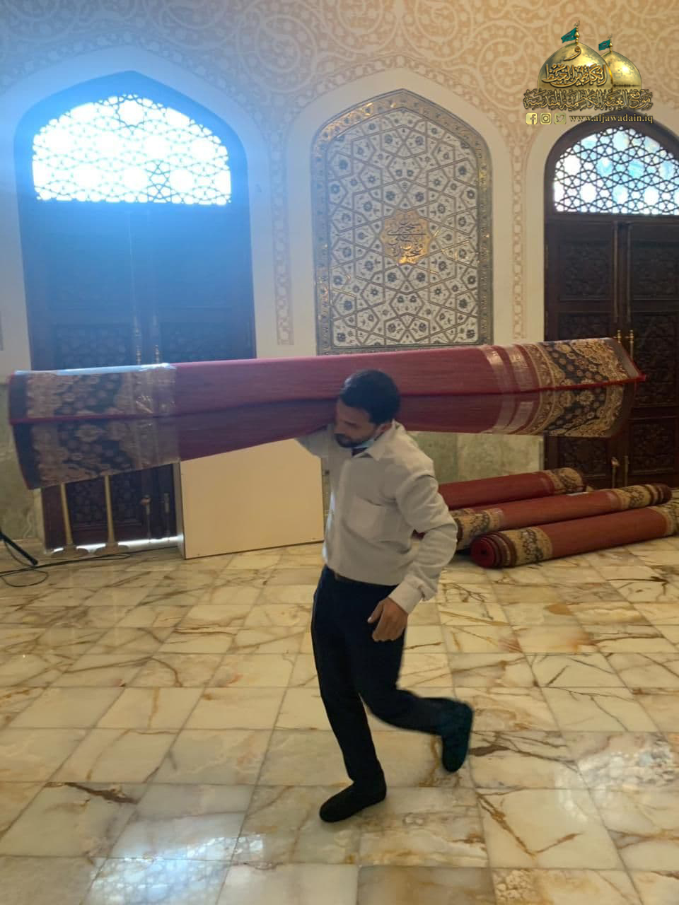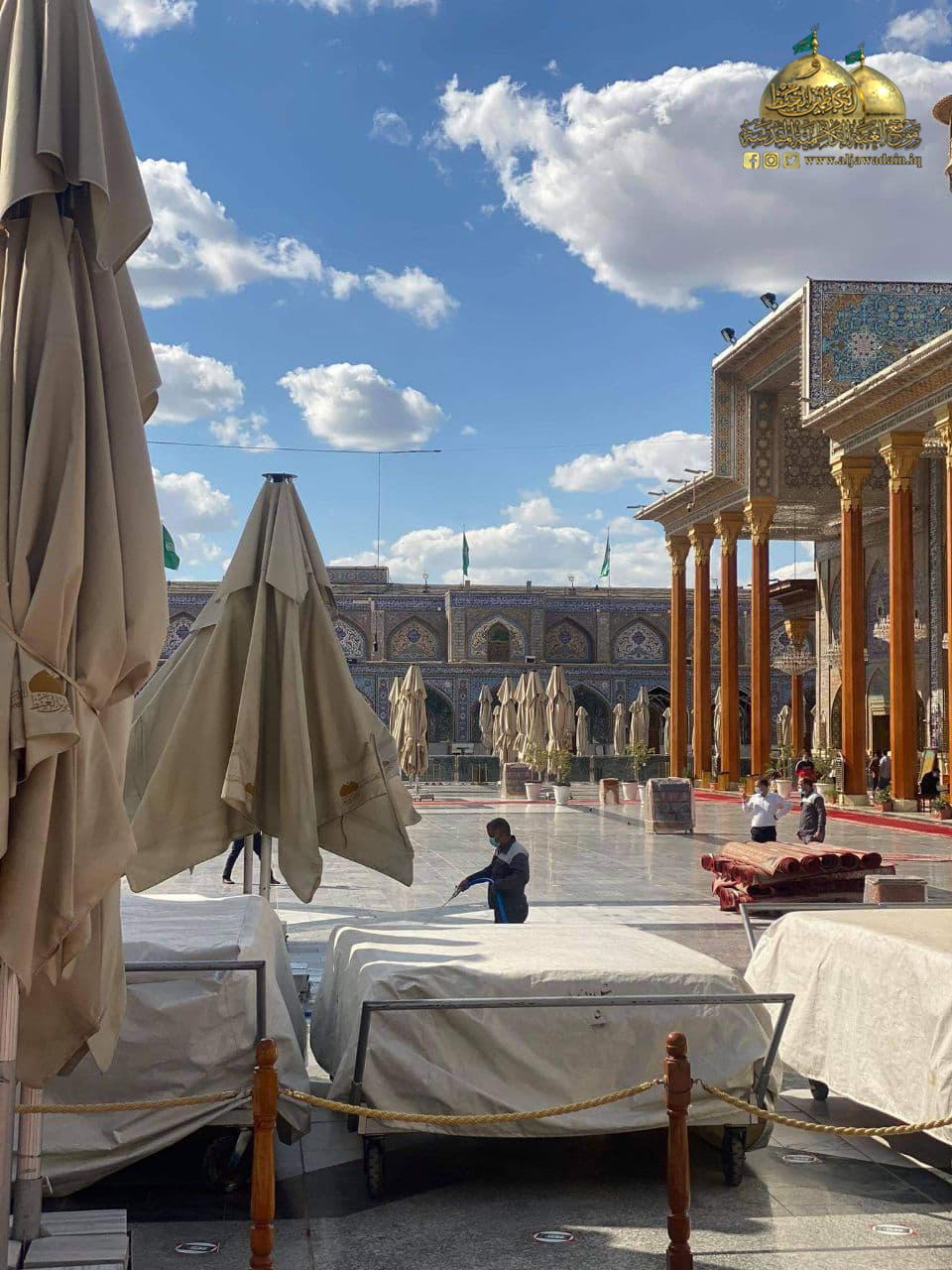 كما تُهيب الأمانة العامة للعتبة الكاظمية المقدسة بالزائرين الكرام التعاون مع ملاكاتها من خلال الحفاظ على النظافة كونها من أولويات التزامنا الديني والأخلاقي، واتباع أساليب الصحة والسلامة العامة، والحفاظ على المسافات الصحية وتحقيق التباعد الصحي الوقائي، إذ تواصل جهودها في حث الزائرين الكرام على الالتزام بالتعليمات والإرشادات الوقائية الصادرة من اللجنة العُليا للصحة والسلامة الوطنية، وتوجيهات المرجعية الدينية العُليا في الحفاظ على الأرواح والأنفس.