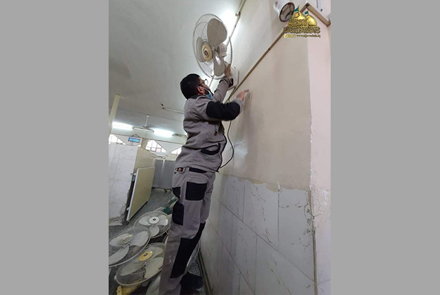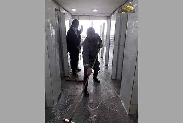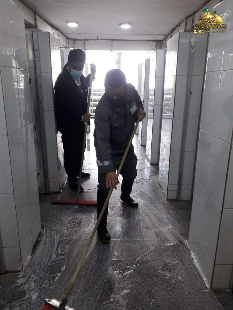 كما أولت شعبة النظافة عنايةً صحية كبيرة من خلال الالتزام بالتوصيات الصادرة من قبل إدارة العتبة المقدسة، والتي تخص ارتداء القفازات والكمّامات أثناء العمل، واستخدام المنظفات والمعقّمات والمطهّرات لإدامة المكان الطاهر للوقاية والحفاظ على صحة وسلامة الزائرين الكرام، ودرء مخاطر الإصابة بوباء كورونا المستجد.