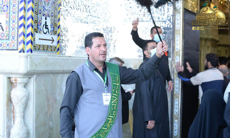 تسابقت أقسام وشعب ووحدات العتبة في ميدان خدمة زائري الإمامين الكاظمين الجوادين "عليهما السلام"، وقدمت كل ما بوسعها من خدمات، فكان لشعبة خدمات العتبة المقدسة جهود متميزة، حيث دأبت على تنفيذ الخطة المعدّة للزيارة وتوفير وسائل الراحة والأجواء الإيمانية المناسبة للزائرين الكرام في أروقة الصحن الكاظمي الشريف، وعن تلك النشاطات تحدث مسؤول شعبة الخدمات الشيخ حسن هادي طه لموقع العتبة الإلكتروني قائلاً: بكل فخر واعتزاز تشرفنا بخدمة زوار الإمامين الكاظمين "عليهما السلام"، حيث شهد هذا الموسم جهوداً استثنائية نظراً للظرف الصحي الراهن، بدءاً من تعفير الحرم المطهر بشكل مستمر والالتزام بالإجراءات والتوصيات الصحية والحث على ارتداء الكمامات وتوعية الزائرين، كما تم تعزيز ملاكات الشعبة بمجموعة من المتطوعين، وتم فتح جميع الممرّات والقواطع أمام حركة الزائرين لضمان الانسيابية وتنظيم حركة الدخول والمغادرة من وإلى الحرم الشريف ، كما تم فتح جامع الجوادين وتفعيل مسارات لذوي الاحتياجات الخاصة، كما تم نصب زيارات مكتوبة في أماكن متفرقة من الصحن الشريف، فضلاً عن تعطير الحرم وتوفير الأجواء المناسبة للزائر لأداء مناسكه العبادية.