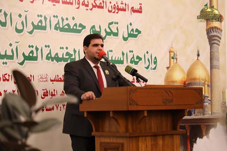 وأضاف: عن الإمام الصادق (عليه السلام) أنه قال: (يَنْبِغِيْ لِلْمُؤْمِنِ أَنْ لَاْ يَمُوْتَ حَتَّى يَتَعَلَّمَ الْقُرْآنَ، أَوْ أَنْ يَكُوْنَ فِيْ تَعَلُّمِهِ).. وغيرها الكثير من الأحاديث الشريفة.. وهذا يلقي علينا مسؤولية الالتزام بما نحفظ ونقرأ ونتعلّم، كي ينطبق قولنا مع سلوكنا.. ومن هذا المنطلق تسعى الأمانة العامة للعتبة الكاظمية المقدسة إلى الاهتمام بكتاب الله العزيز حفظا وتلاوة وتعليما، فها نحن اليوم نجتمع على مأدبة الله في هذا اليوم المبارك للاحتفاء بحملة القرآن الذين دأبوا وسعوا لحفظه بما يعود عليهم بالنفع في الدنيا والآخرة، وقد جدوا واجتهدوا ليقطفوا ثمار جهودهم، وليكونوا مصداقا لقول النبي محمد (صلى الله عليه وآله وسلم): (مَا ٱجتَمَعَ قَومٌ فِي بَيتٍ مِن بُيُوتِ الله يَتْلُونَ كِتَابَ الله، وَيَتَدَارَسُونَهُ بَيْنَهُمْ، إِلَّا نَزَلَتْ عَلَيْهِمُ السَّكِينَةُ، وَغَشِيَتْهُمُ الرَّحْمَةُ، وَحَفَّتْهُمُ الْمَلَائِكَةُ، وَذَكَرَهُمُ اللهُ فِيمَنْ عِندَهُ).