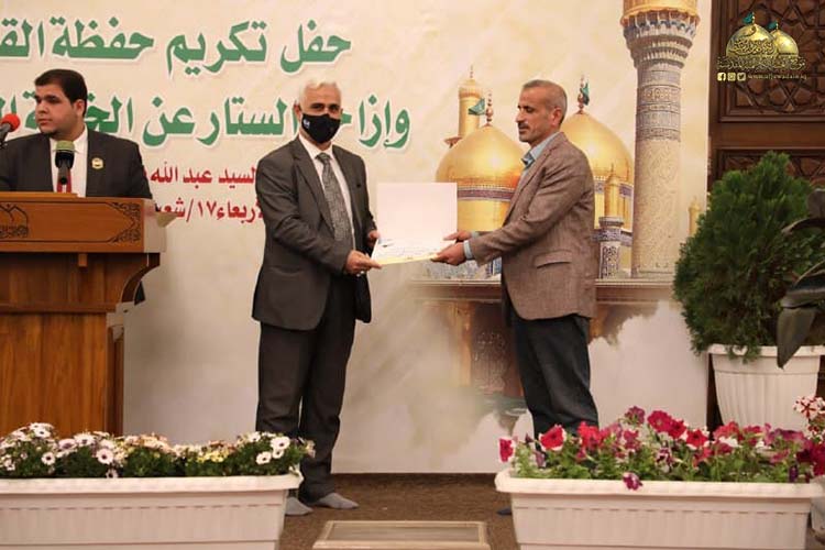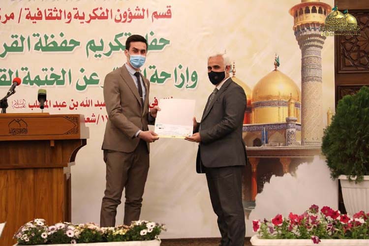 تزامناً مع ذكرى ولادة شريك القرآن الإمام الثاني عشر من الأئمة الهداة الحجة بن الحسن المهدي "عجل الله فرجه الشريف" أقامت الأمانة العامة للعتبة الكاظمية المقدسة/ مركز القرآن الكريم حفل تكريم كوكبة جديدة من طلبة دوراتها ممن حفظوا أجزاءً من القرآن الكريم، شهده رواق السيد عبد الله بن عبد المطلب "عليه السلام" في رحاب الصحن الكاظمي الشريف بحضور الأمين العام للعتبة الكاظمية المقدسة الأستاذ الدكتور حيدر حسن الشمّري وأعضاء مجلس الإدارة الموقّر، وعدد من الأساتذة والمهتمين بالشأن القرآني، وطلبة الدورات القرآنية وذويهم مع الالتزام بالشروط الصحية والوقائية وتحقيق التباعد البدني.