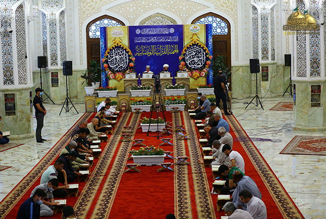 وشهدت الجلسات حضور خدّام الإمامين الكاظمين الجوادين "عليهما السلام" وزائريهما الكرام مع تشديد الالتزام بالإجراءات الصحية والوقائية، للتزوّد ببركات الذكر الحكيم، ونيل الثواب العظيم في بيت من بيوت الله، وباب من أبواب قضاء الحوائج، رافعين أكفهم بالدعاء والزيارة بالإنابة عن جميع المسلمين والمسلمات في مشارق الأرض ومغاربها، وزائري الإمامين الكاظمين الجوادين "عليهما السلام" الذين يتعذر حضورهم وزيارتهم للعتبة الكاظمية المقدسة لإحياء ليالي الشهر الكريم بسبب حظر التجوال الصحي الوقائي سائلين المولى العليّ القدير أن يدفع البلاء والوباء عن هذه الأمة، ويحفظ العباد والبلاد والمقدسات، أنه سميع مُجيب.