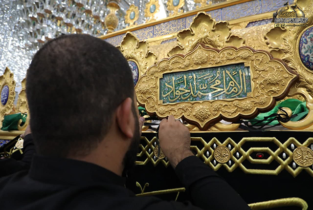 إحياءً للذكرى السنوية لاستشهاد كريم سادات مضر الإمام محمد بن علي الجواد "عليه السلام"، وتجديداً للعهد والولاء للرسول الأكرم وآله الأطهار "عليهم السلام"، شهد ضريح الإمامين الكاظمين الجوادين "عليهما السلام" تعليق الأوشحة ونشر السواد، إيذاناً لإعلان مظاهر الحزن والحِداد بهذا المصاب الجلل الذي أفجع قلوب الموالين لآل بيت النبوة "عليهم السلام"، حيث قامت وحدة الحرم، ووحدة الخياطة والتطريز التابعة لشعبة خدمات العتبة المقدسة بتلك الأعمال، تزامناً مع إقامة مراسم إستبدال رايتي الإمامين الجوادين عليهما السلام" برايتي السواد فوق القبتين الشريفتين.