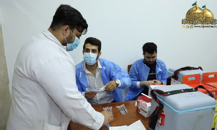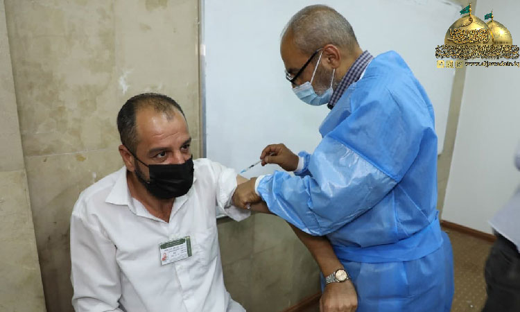 بمتابعة مباشرة من قبل خادم الإمامين الكاظمين الجوادين، الأمين العام للعتبة الكاظمية المقدسة الدكتور حيدر حسن الشمّري، ولأجل الحفاظ على صحة خدّام العتبة الكاظمية المقدسة وسلامتهم، نظّم قسم خدمة الزائرين/ شعبة الطبابة، وبالتعاون والتنسيق مع دائرة صحة بغداد ـ الكرخ حملة تطعيم اللقاح المضاد لفيروس كورونا من خلال إرسال (نساء ورجال) فريق طبي متخصص وتوفير الكميات المناسبة من اللقاحات الوقائية.