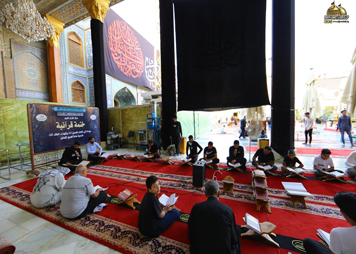 لمناسبة حلول شهر محرم الحرام، وذكرى شهادة الإمام الحسين "عليه السلام"، وانطلاقاً عما ورد في الزيارة الجامعة " كنت للرّسول صلّى الله عليه وآله ولدا، وللقرآن سندا، وللإمّة عضدا " وتأكيداً للعلاقة الوطيدة بين العترة الطاهرة والقرآن الكريم في قول النبي الأكرم محمد "صلى الله عليه وآله" ( إني تارك فيكم الثقلين : كتاب الله ، وعترتي أهل بيتي ، ما إن تمسكتم بهما لن تضلوا بعدي أبدا )، أقامت الأمانة العامة للعتبة الكاظمية المقدسة مركز القرآن الكريم جلسات الختمة القرآنية المُهداة للإمام الحسين وشهداء الطف "عليهم السلام"، وبواقع جلستين الأولى للرجال، وأخرى للنساء والتي ستستمر بإذنه تعالى طيلة أيام شهري محرم الحرام، وصفر الخير، والمهدى ثوابها إلى سيد الشهداء الإمام الحسين وأهل بيته وأنصاره الكرام "عليهم السلام" بمشاركة عدد من قرّاء العتبة المقدسة، وبمشاركة عددٍ من أساتذة وطلبة وطالبات الدورات القرآنية، وزائري وزائرات الإمامين الكاظمين الجوادين "عليهما السلام".