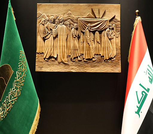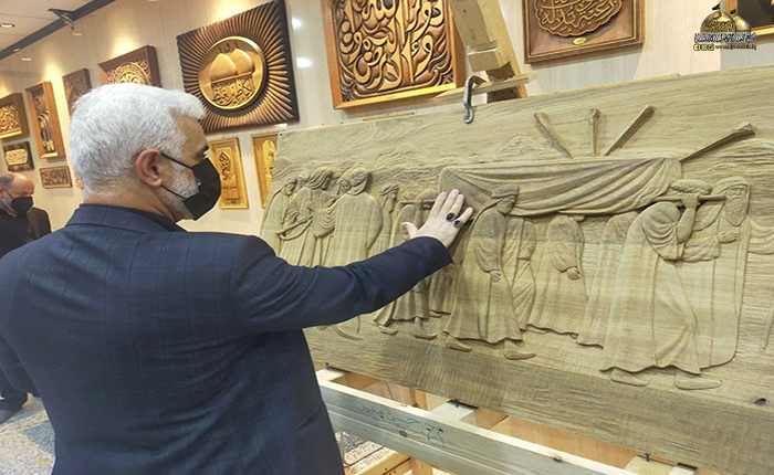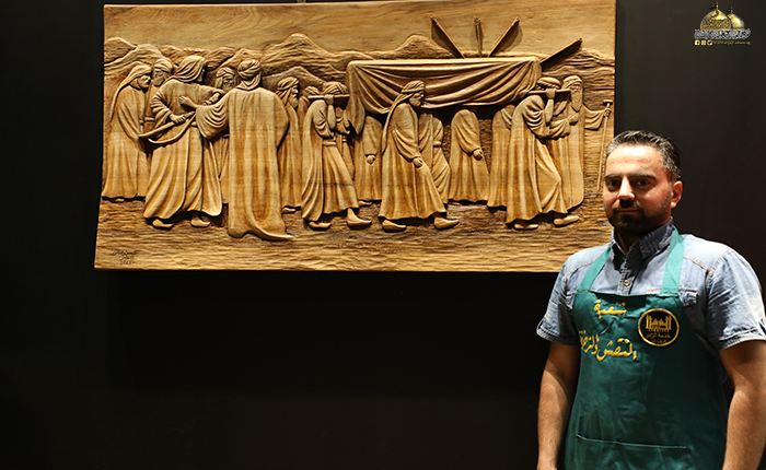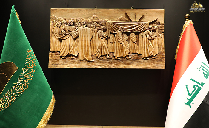 أنامل الإبداع لخادم الجوادين "عليهما السلام" استطاعت اليوم أن تجسد لنا لوحة فنية جديدة لتضاف إلى سجل الإبداعات الثقافية لورشة النقش والزخرفة في العتبة الكاظمية المقدسة، لوحة بل هي أكثر من لوحة حملت في طياتها أفكاراً ومعانٍ وأسراراً ودروساً وعِبَر جسدت مواقف ولحظات تأريخية لشهادة ثاني الكواكب المحمدية سبط النبي الأكرم "صلى الله عليه وآله وسلم" الإمام أبي محمد الحسن المجتبى "عليه السلام".
