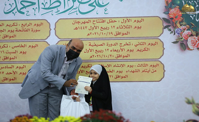 وتستمر فعاليات مهرجان ربيع الولادة الثالث الذي تقيمه الأمانة العامة للعتبة الكاظمية المقدسة تحت شعار: (على صراط أحمد)، حيث شهد اليوم الثاني للمهرجان حفل تخرج الدورة القرآنية الصيفية العاشرة لتعليم القرآن الكريم وأحكامه، والعقائد والأخلاق وأصول الدين وفروعه، بحضور نائب الأمين العام للعتبة الكاظمية المقدسة المهندس سعد محمد حسن، وعددٍ من أعضاء مجلس الإدارة الموقّر، وممثلي المزارات الشيعية الشريفة والأساتذة والمهتمين بالشأن القرآني، وطلبة الدورة القرآنية من البنين والبنات.