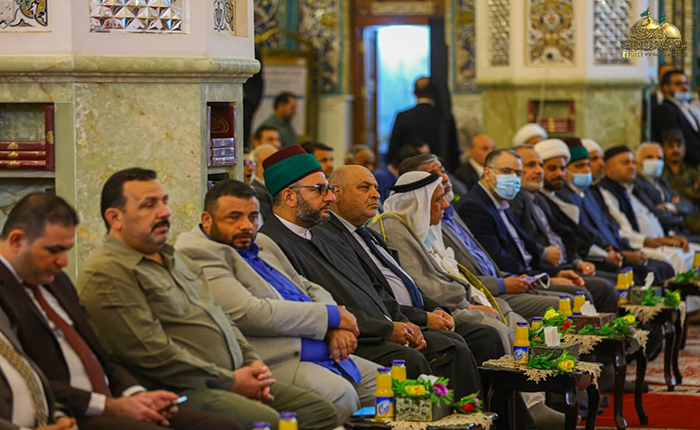 استهل الحفل بتلاوة آيات من الذكر الحكيم شنف بها قارئ العتبة المقدسة الشيخ عامر الخفاجي أسماع الحاضرين، أعقبها كلمة كلمة ديوان الوقف الشيعي وألقاها خادم الإمامين الكاظمين الجوادين الدكتور حيدر حسن الشمّري جاء فيها قائلاً: (يسعدني في هذا اليوم أن أبارك للعام الإسلامي خاصة، والإنساني عامة هذه الذكرى العظيمة التي تمرّ على البشرية كلّها، وهي تتطلع إلى أفق السماء، ليُعلن لها ولادةُ من هو رحمة للعالمين: (وَمَا أَرْسَلْنَاكَ إِلَّا رَحْمَةً لِّلْعَالَمِينَ)، والتي تتزامن مع ولادة حفيده الإمام جعفر الصادق "عليه السلام" أنه النور الذي عمّ الأرض والسماء يوم مولده المبارك، ليكون الشاهد المبشِّر، والداعي إلى الله الأحد: (يَا أَيُّهَا النَّبِيُّ إِنَّا أَرْسَلْنَاكَ شَاهِدًا وَمُبَشِّرًا وَنَذِيرًا، وَدَاعِيًا إِلَى اللَّهِ بِإِذْنِهِ وَسِرَاجًا مُّنِيرًا)، فأيُّ سراج كان محمد "صلى الله عليه وآله وسلّم" في الأمة، وأيُّ هداية كانت للبشرية بوجوده، إنه صاحب الخُلق الرفيع الذي لا يدانيه أحد من الخلق أجمعين، فقال عزّ وجل فيه (وَإِنَّكَ لَعَلَىٰ خُلُقٍ عَظِيمٍ)، إنه محمد الأوصاف، أحمد الأفعال.