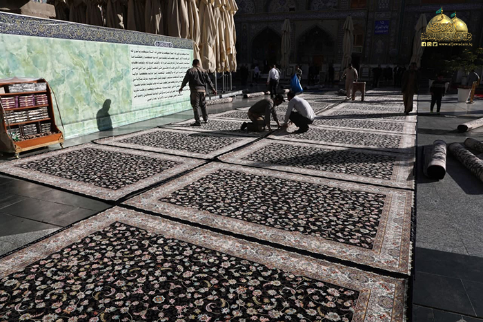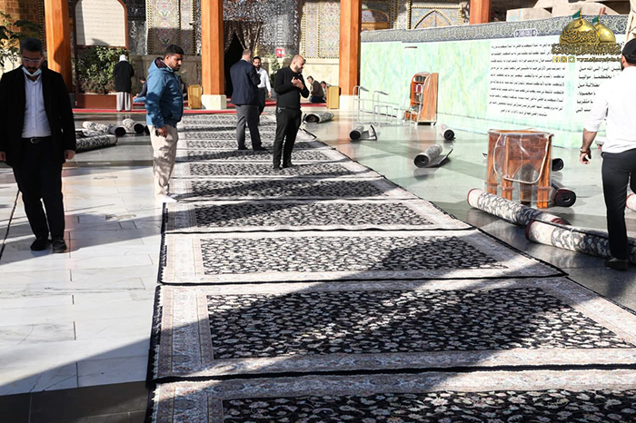 تيمناً بذكرى الولادة المباركة لعقيلة الطالبيين السيدة زينب الكبرى بنت أمير المؤمنين علي بن أبي طالب "عليهما السلام"، وجّه خادم الإمامين الكاظمين الجوادين الأمين العام للعتبة الكاظمية المقدسة الأستاذ الدكتور حيدر حسن الشمّري، ملاكات شعبة النظافة في العتبة المقدسة بفرش أطقم السجاد الجديد في أرجاء الصحن الكاظمي الشريف، حيث تم تغيير فرش السجاد القديم، وبواقع (600) سجادة كوجبة أولى قياس (2x3) والتي تتميز بمواصفات وجودة عالية وفاخرة بدءاً من دقة العمل الفني والحرفي ونقوشها النباتية وألوانها الزاهية حيث أن المنسوج مصنّع خصيصاً إلى العتبة الكاظمية المقدسة.