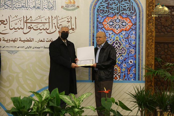 اختتمت فعاليات المهرجان السنوي السابع للشعر العربي الذي أقامته الأمانة العامة للعتبة الكاظمية المقدسة تحت شعار: (القضية المهدوية في قوافي الولاء) بحضور الأمين العام للعتبة الكاظمية المقدسة خادم الإمامين الكاظمين الجوادين الدكتور حيدر حسن الشمّري وأعضاء مجلس الإدارة الموقّر، وشخصيات ثقافية واجتماعية، وبمشاركة نخبة من الشعراء والأدباء ومن مختلف محافظات بلدنا العراق العزيز ممن جاءوا ليساهموا برفيف نبضات قلوبهم ويلقوا بظلال قصائدهم الغراء بأروع ما تجود به خلجاتهم من عذب الكلام ودرر منتقاة وروائع مصطفاة في هذا الملتقى الأدبي عن إمام زمانهم منقذ البشريّة من الظلم والجور، وناشر راية الهدى في كلّ بقاع العالم ذو الطلعة البهية بقية الله في أرضه الإمام الخاتم المهدي المنتظر "عجل الله فرجه الشريف"، وإغناء المكتبة الأدبية بالشعر العربي الهادف.