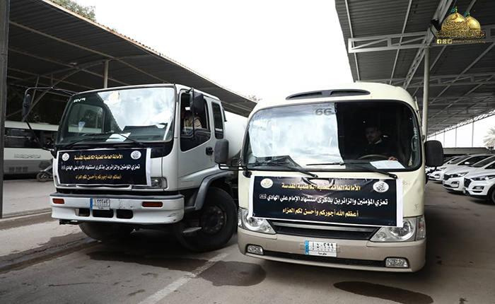 بتوجيه من قبل خادم الإمامين الكاظمين الجوادين، الأمين العام للعتبة الكاظمية المقدسة الدكتور حيدر حسن الشمّري، شارك كوكبة من خدّام العتبة الكاظمية المقدسة في الزيارة الكبيرة التي شهدتها مدينة سامراء المقدسة في ذكرى استشهاد الإمام علي الهادي "عليه السلام"، إذ عملوا جاهدين جَنباً إلى جنب بمساندة إخوانهم خدام العتبة العسكرية المقدسة، وإحياء هذه المناسبة الأليمة، حيث ساهم الخدم في قسم العلاقات العامة/ وحدة مضيف الجوادين بإرسال المواد الغذائية، ومياه الشرب وتهيئة وجبات الطعام للزائرين الكرام، كما عمد قسم الآليات إلى استنفار جهود العتبة الكاظمية المقدسة وباصاتها الخدمية ودخولها ضمن خطة نقل الزائرين، فضلاً عن مشاركة كوكبة من الخدم في شعبة النظافة ووحدة الجهد البلدي لإدامة المدينة المقدسة والحفاظ على نظافتها وتوفير سبل الراحة للزائرين الكرام، ورافق تلك النشاطات جهود قسم حفظ النظام الذي قدّم خدماته على المستوى التنظيمي لتأمين أجواء الزيارة المباركة.