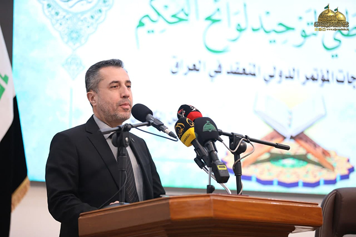 وأضاف: (أن التطور الذي طرأ على الكثير من الشخصيات القرآنية في العراق عن طريق وصول البعض إلى مراتب الشهادات العُليا ومشاركتهم القيمة في المسابقات الوطنية والدولية في مجال القرآن الكريم وتلاوته وتفسيره قد أوصلهم إلى النضوج الفكري الرائد والخبرة المتراكمة واللذان يمهدان إلى وضع القرار العلمي في مجال القوانين والقواعد والأسس التي عن طريقها يمكن الوصول إلى الإنصاف العادل بين المتنافسين في المسابقات القرآنية المختلفة، فها هي الكاظمية اليوم ومن جوار بحر العلوم الزاخر الإمامين الجوادين "عليهما السلام" نجتمع لنتدارس ما تم جمعه من لوائح تحكيم عديدة آخذين بنظر الاعتبار ما تم طرحه من مخرجات علمية رصينة أفرزتها لجان متخصصة في دول عديدة لها باع طويل في إجراء المسابقات القرآنية للخروج بقانون علمي رصين ينصفهم بالحق والعدل والمساواة).