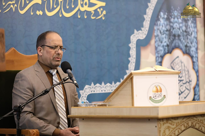 وسط غمرة الأفراح التي تعيشها أمتنا الإسلامية بحلول ذكرى ولادتي أمير المؤمنين وقائد الغر الميامين الإمام علي بن أبي طالب، وحفيده شباب الأئمة الإمام محمد بن علي الجواد "عليهم السلام"، أقامت الأمانة العامة للعتبة الكاظمية المقدسة/ قسم الشؤون الفكرية والثقافية/ مركز القرآن الكريم بالتعاون مع المديرية العامة للتوجيه العقائدي في الحشد الشعبي محفلاً خاصاً في رواق سيدنا عبد الله بن عبد المطلب "عليه السلام"، ضمن فعاليات محفل ترانيم السماء القرآني الأسبوعي بحضور عضو مجلس الإدارة المهندس جلال علي محمد، وسماحة السيد محمد الحيدري "دامت توفيقاته" مدير التوجيه العقائدي في الحشد الشعبي، وكوكبة من الأساتذة والمختصين بالشأن القرآني، وجمع غفير من زائري الإمامين الكاظمين الجوادين "عليهما السلام".
