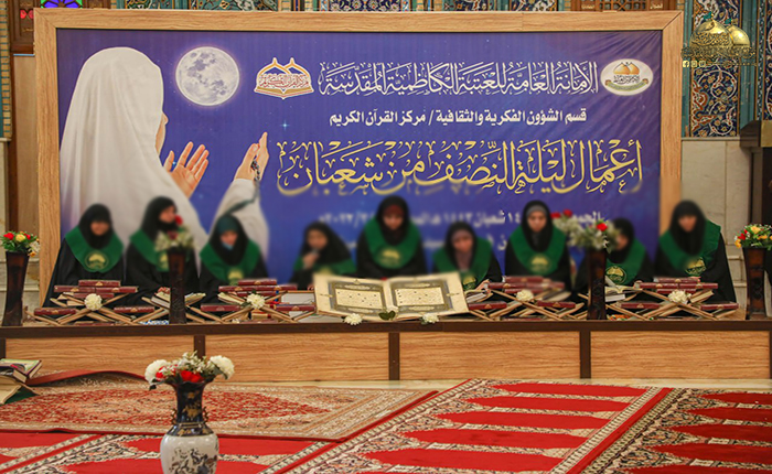 تزامناً مع ذكرى ولادة القمر الثاني عشر والخلف الصالح من أئمة الهدى الإمام المهدي المنتظر "عجل الله فرجه الشريف" أقامت الأمانة العامة للعتبة الكاظمية المقدسة/ قسم الشؤون الفكرية والثقافية ـ مركز القرآن الكريم مراسم إحياء ليلة بالغة الشرف، إلا وهي ليلة النصف من شهر شعبان المعظم، حيث استقبلت الرحاب الطاهرة للمشهد الكاظمي المقدس بأجوائها الإيمانية الجموع الغفيرة من الموالين وزائري الإمامين الكاظمين الجوادين "عليهما السلام" وهم يناجون ربهم بالصلاة والدعاء والاستغفار طالبين من بارئهم غفران الذنوب، وحسن العاقبة، والحشر في ركاب النبي الأكرم وآل بيته الأطهار "عليهم السلام".