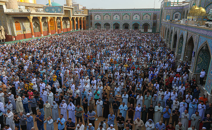 من جوار حرم الإمامين الكاظمين "عليهما السلام" جموع الموالين تحتشد لأداء صلاة عيد الفطر السعيد