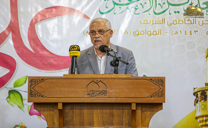 لمناسبة حلول عيد الغدير الأغر، يوم تجديد البيعة التي عقد لواءها النبي الأكرم محمد "صلى الله عليه وآله" بيده لعلي بن أبي طالب "عليه السلام" يوم الثامن عشر من ذي الحجة سنة 10هـ، ليسقي الوالهين من سلسبيل خيره وهدي نعمائه، ويفتح بمروره في كل عام العشق لمحمد النبي ولعلي الوصي وللأئمة من بعده "عليهم السلام" وإعلان العهد والولاء لصاحب الغدير وخليفة رسول ربّ العالمين على جميعِ المسلمين أمير المؤمنين الإمام علي بن أبي طالب "عليه السلام" بكل ألوان الولاء، فمن جنة الإمام الكاظم وحفيده الإمام الجواد "عليهما السلام"، شاركت الأمانة العامة للعتبة الكاظمية المقدسة الأمة الإسلامية أفراحها من خلال إقامة حفلها المركزي البهيج في رحاب صحن باب المراد، بحضور نائب الأمين العام للعتبة الكاظمية المقدسة المهندس سعد محمد حسن، وعددٍ من أعضاء مجلس الإدارة الموقر، والعديد من الشخصيات الحكومية والدينية والاجتماعية وجمع غفير من زائري الإمامين الجوادين "عليهما السلام".