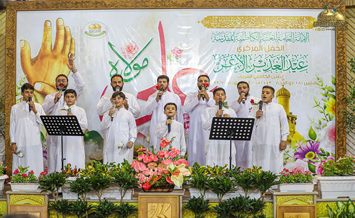وكان لفرقتي الإنشاد وأشبال الجوادين مشاركة حيث صدحت بها حناجرهم ولاءً وحبا لأمير المؤمنين والأئمة الأطهار من ذريته "عليهم السلام" بأوبريت (بشرى الغدير)، واختتم الحفل بالأهازيج والردات الولائية إذ أجاد فيها خادمي العتبة المقدسة الرادود علي نجم ومصطفى الكناني وأضفيا روح الفرح والبهجة والسرور في نفوس المؤمنين من زائري الإمامين الجوادين "عليهما السلام".
