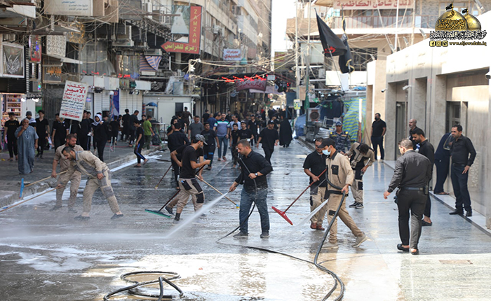 الأمانة العامة للعتبة الكاظمية المقدسة تطلق حملة تنظيف الشوارع المؤدية للصحن الشريف بعد انتهاء مراسم عاشوراء