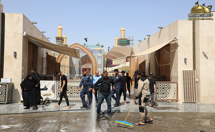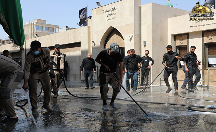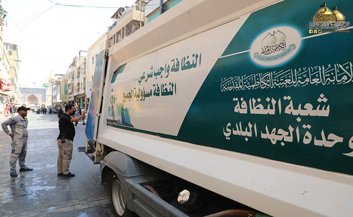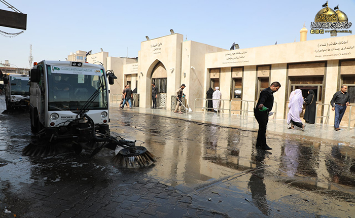 ما زال دم الإمام الحسين "عليه السلام" الطاهر بركاناً يتفجر وما زالت قضيته تشغل القلوب والأذهان حيّة طرية وجرح لا يندمل كأنها حدث بالأمس القريب، وبعد انتهاء المراسم العزائية التي شهدتها مدينة الكاظمية المقدسة، وجّه خادم الإمامين الكاظمين الجوادين، الأمين العام للعتبة الكاظمية المقدسة الدكتور حيدر حسن الشمّري شعبة النظافة/ وحدة الجهد البلدي بالمباشرة بحملة تنظيف وإدامة واسعة استنفرت العجلات الخدمية والحوضية المخصصة لهذه الأعمال حيث تم غسل وتنظيف الطرق والشوارع المجاورة لصحن الإمامين الكاظمين الجوادين "عليهما السلام"، ورفع أكداس النفايات بمشاركة الملاكات الخدمية في قسم الآليات، بعد الانتهاء من مراسم زيارة عاشوراء الأليمة وما احتضنته تلك المدينة المقدسة من جموع موالية بعد أدائهم وإحيائهم للشعائر الحسينية.