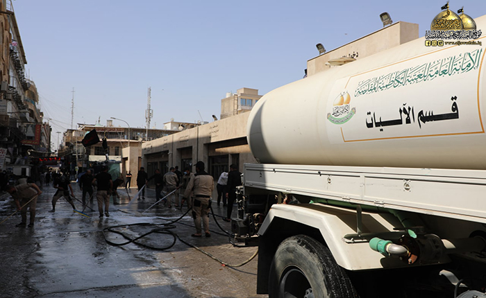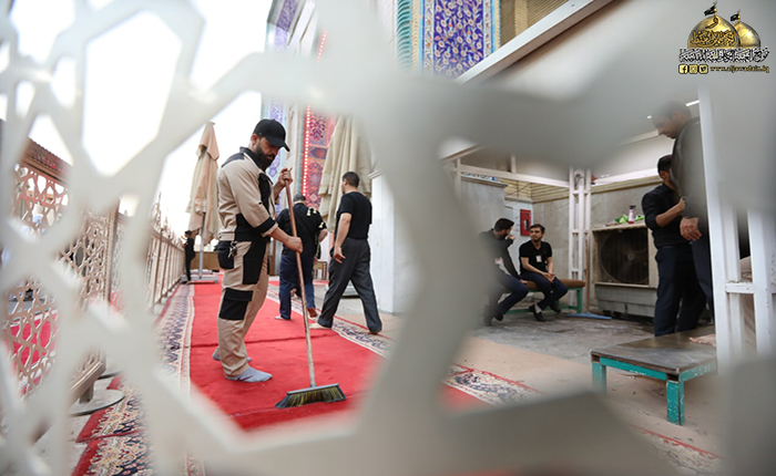 كما استنفرت شعبة النظافة جهودها وإنجاز أعمالها لأجل إدامة المكان الطاهر والحفاظ على نظافته وتوفير سبل الراحة للزائرين الكرام بزيادة مساحات أوسع لفرش السجاد وإدامة نقاط شرب المياه الصحية، والحفاظ على نظافة الوحدات الصحية، فضلاً عن إقامة حملات تنظيف الشوارع المؤدية للصحن الشريف بعد انتهاء مراسم العزاء في يوم العاشر من محرم الحرام.
