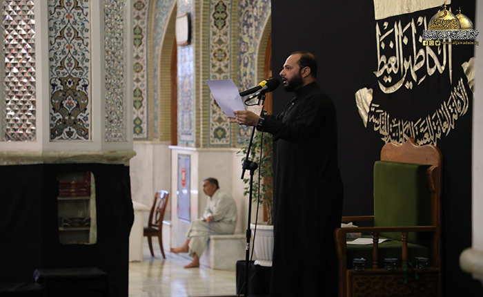 من طف كربلاء نستلهم الخلود والإباء، ونجدد الحزن والعزاء لإحياء ذكرى شهادة زين المتهجدين ودرة الصالحين الإمام علي بن الحسين "عليه السلام" في الخامس والعشرين من شهر محرم الحرام، وبرعاية مباركة من خادم الإمامين الكاظمين الجوادين الأمين العام للعتبة الكاظمية المقدسة الدكتور حيدر حسن الشمّري، أقام موكب خدّام العتبة الكاظمية المقدسة مجلسه العزائي السنوي بهذه المناسبة الأليمة في رواق سيدنا عبد الله بن عبد المطلب "عليه السلام"، استضيف فيه خادم العتبة المقدسة فضيلة الشيخ منير الكاظمي ليتحف الحضور بمحاضرة دينية قيمة تناول فيها قَبَسات من السيرة المباركة للإمام الرابع من الأئمة الهداة "عليهم السلام" إذ بيّن في بحثه الصفات التي تجلّت في شخصية الإمام السجاد "عليه السلام" وهي: " العِلم والعدالة والشجاعة"، وأشار إلى مضامين الصحيفة السجادية والأدعية الواردة فيها التي تفضي بالإنسان للوصول إلى مقاصد الإمام "عليه السلام" لنيل رضا الله تعالى والتي تعمل على تربية المؤمن من خلال أدب الدعاء والابتهال إلى الله عز وجل.