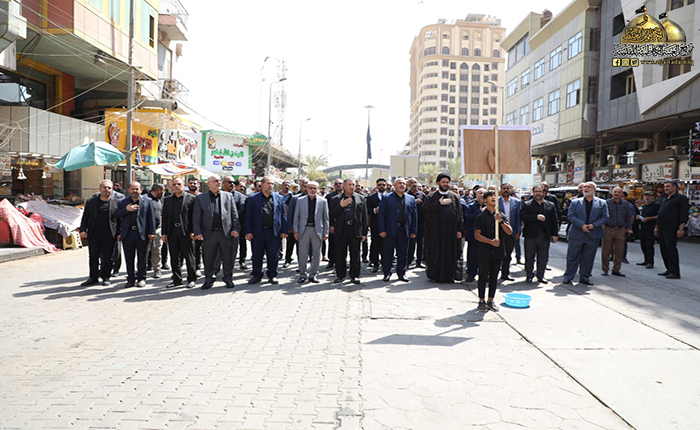 إحياءً للذكرى الأليمة لشهادة سيد شباب أهل الجنة الإمام الحسن المجتبى "عليه السلام"، وبرعاية مباركة من قبل رئيس ديوان الوقف الشيعي الدكتور حيدر حسن الشمّري، نظمت دائرة إحياء الشعائر الحسينية/ موكب ديوان الوقف الشيعي المركزي مسيرة ولائية عزائية حاشدة بمشاركة السادة وكلاء رئيس الديوان وعدد من المدراء العامين، وكوكبة من موظفيها انطلقت من شارع باب المراد متجهة صوب حرم الإمامين الجوادين "عليهم السلام" صدحت فيها حناجر المشاركين بالردّات وهتافات الولاء وقطعت العهد للإمام الحسن الزكي "عليه السلام" بالسير على نهجه القويم ومسيرته الخالدة المتمثّلة بفضائله وتضحياته وسجاياه، ودوره الريادي الكبير في قيادته لأمّة جده رسول " الله صلّى الله عليه واله وسلّم"، وقدَّمت أحرَّ آيات العزاء والمواساة للإمامين الكاظمين الجوادين "عليهما السلام".