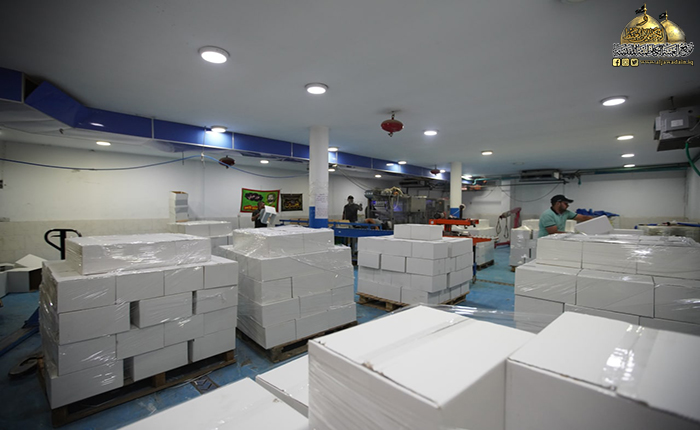 وبيّن في حديثه أن الطاقة الانتاجية قد وصلت إلى أكثر من (108000) قدح يومياً والعدد قد يتصاعد مع مراعاة جودة الإنتاج، وأن هذه الكميات من المياه توزع على النحو الآتي: منها لسدّ حاجة مضيف الإمامين الجوادين "عليهما السلام"، وأخرى توزع إلى أماكن مبيت الزائرين الكرام، وجزءاً منها يوزع على المواكب الحسينية والجوامع والحسينيات وعددٍ من البيوتات المُضيّفة في مدينة الكاظمية المقدسة والمناطق المجاورة لها.