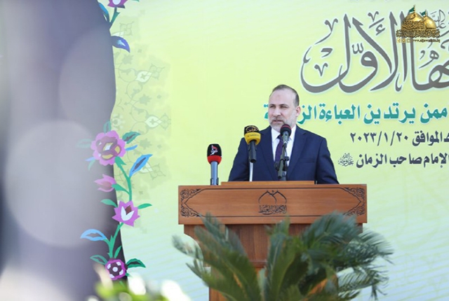 استهلت فعاليات افتتاح المهرجان بتلاوة من الذكر الحكيم بصوت قارئ العتبة المقدسة الخادم باقر أحمد، بعدها كلمة الأمانة العامة للعتبة الكاظمية المقدسة وألقاها أمينها العام جاء فيها: (حريّ بنا أن نقتدي بالسيدة الزهراء البتول عليها السلام، وأن نجعل سيرتها خارطة طريق لنا بعد أن تجسدت فيها المُثل العليا فكراً ومنهجاً وسلوكاً.. ولا يخفى عليكم أيها الحضور الكريم أنها تستحق منا ان ندخل السرور على قلبها المفجوع ومن مصاديق إدخال السرور هو اجتماعنا اليوم بجوار الإمامين الكاظمين الجوادين عليهما السلام في (مهرجان أم أبيها الأول) فبعد أن ولدت فكرة هذا المشروع تم التنسيق مع المؤمنين الأفاضل الذين لهم رغبة دائمة في دعم الشباب وطلبة الجامعات فاستمر التنسيق مع الجامعات برؤسائها ومسؤولي النشاطات فيها للحصول على أسماء بناتنا الطالبات العزيزات ممن يرتدين العباءة الزينبية وهو دليل على حرص بناتنا الكريمات على إحياء التزام السيدة الزهراء عليها السلام بتعاليم دين الله الإسلام من خلال ارتداءهن العباءة وبعد التواصل المستمر تم تزويدنا بأسماء الطالبات العزيزات في الجامعات الحكومية ولأهمية الموضوع وخصوصيته الكبرى والتشجيع عليه تم شمول بعض الكليات الأهلية.