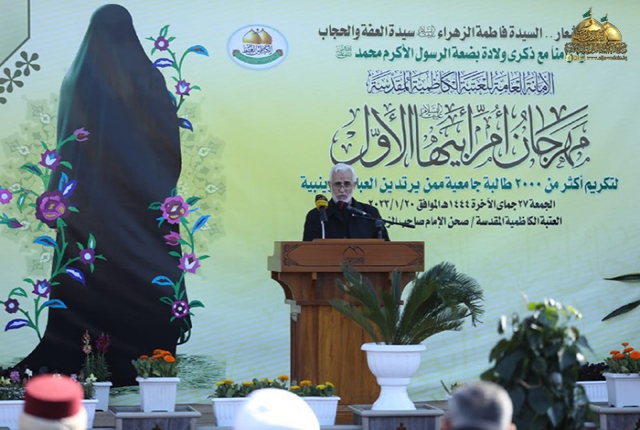 إن الالتزام بالحجاب مسؤولية شرعية وارتداء العباءة الزينبية هي قيمة كبرى للكمال والسمو، ومنتهى العفاف والستر، فانتساب المرأة المسلمة إلى جمع المحجبات والملتزمات بالعباءة بأفضل صورها هو محاكاة لعنوان حجاب سيدة الطهر والقداسة سيدتنا ومولاتنا فاطمة الزهراء "عليها السلام" وعلمها وعفتها وعبادتها وجهادها في ميادين الحياة، بل وهوية اقتداء بعقيلة الطالبيين السيدة زينب بنت أمير المؤمنين علي "عليهما السلام"، فحرصاً على هذا العنوان الكبير وما يحمل بين طياته من ثقافة الإسلام المحمدي الأصيل، وإحياءً للعباءة الزينبية في الجامعات التي عصفت بها التيارات وتلاقفتها الموضات، أقامت الأمانة العامة للعتبة الكاظمية المقدسة، وبرعاية مباركة من قبل أمينها العام خادم الإمامين الكاظمين الجوادين الدكتور حيدر حسن الشمّري، مهرجان أم أبيها الأول، تحت شعار: (السيدة فاطمة "عليها السلام" .. سيدة العفة والحجاب)، وتكريم أكثر من (2000) طالبة يرتدين العباءة الزينبية داخل الحرم الجامعي، بحضور ممثل وزارة التعليم العالي والبحث العلمي، وعدد من رؤساء الجامعات، وعمداء الكليات، والأساتذة التدريسيين والأكاديميين، وكوكبة من الطالبات الجامعيات