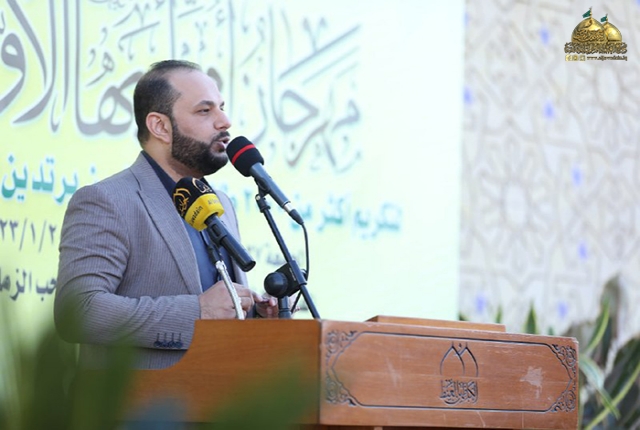 ثم كانت هناك كلمة لخادم العتبة الكاظمية المقدسة فضيلة الشيخ عماد الكاظمي في هذه المناسبة المباركة بعنوان: (من أنتِ..) أشار خلالها أن الإسلام رفع وكرّم مقام المرأة المسلمة، فهي الأم، والزوجة، والأخت، والبنت الصالحة التي ذكرت في شواهد عديدة في القرآن الكريم، مؤكداً أن المرأة هي أساس الأسرة وعمادها، ويجب أن نحافظ على هذه الأسرة التي أكد عليها النبي الأكرم وأهل بيته الأطهار "صلوات الله عليهم أجمعين" في كثير من المواضع والأحاديث الشريفة، لذا نحن في العتبة الكاظمية المقدسة نقيم هذا المهرجان تحت رعاية مولاتنا فاطمة الزهراء "عليها السلام"، لنحيي مبادئ القرآن فنحن أمام الأمل والعمل، ونسأله تعالى وببركة الإمامين الجوادين "عليهما السلام" أن نوفق لتأدية رسالتنا في المجتمع.