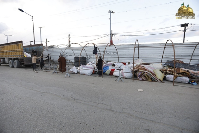 المواكب والهيئات الحسينية تباشر بنصب سرادقاتها وتستعد لاستقبال ضيوف الكاظمين "عليهما السلام"