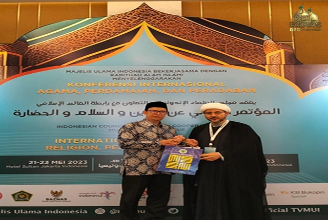 بتوجيه من قبل الأمين العام للعتبة الكاظمية المقدسة، خادم الإمامين الكاظمين الجوادين الدكتور حيدر حسن الشمّري، شارك وفد العتبة الكاظمية المقدسة المقدسة في المؤتمر الدولي الذي أقامه مجلس العلماء الإندونيسي بالتعاون مع رابطة العالم الإسلامي في العاصمة جاكرتا بعنوان: (الدين والسلام والحضارة) للمدة من 21ـ 23/آيار 2023م، بحضور نائب رئيس الجمهورية الاندونيسي الشيخ الأستاذ الدكتور معروف أمين، وكوكبة من الشخصيات الدينية والإسلامية والأكاديميين في دول العالم الإسلامي.